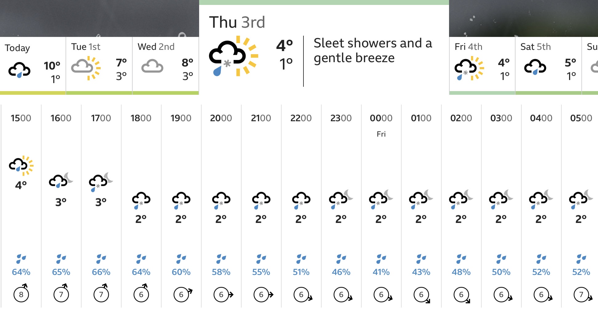 Anything that says sleet for everyone else is snow for us. I should have grown out of the excitement of snow but I still haven’t. I love snow, even though it’s hard work with all our animals….making footprints in fresh snow, the way the world goes all quiet and eerie. I think this, if it’s anything, it is just going to be an insignificant smattering of snow, but I can’t wait for the first time each year I see that snowflake on the weather forecast.