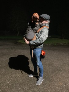 Last week, one evening when it was pouring down with rain, my husband and I went out with Anya in the car to drop something at the post box. When we got back Anya refused to get out because she didn’t want to get her paws wet. She’s supposed to be a hunting dog but she’s such a princess! I started towards the house and turned round to see this…