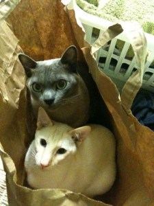 It’s been a sad week for me though (why this letter is late, I’m sorry)…. my very loved Archie-cat (the grey one that slept in my arms) died. He had been licking his lips and coughing a bit and was really sleepy. I took him to be checked at the vets. They sedated him, found a large cancerous tumour and he didn’t ever wake back up. He was only 13, which isn’t old, as I told you, he was only late middle aged. I am missing him like crazy and was a bit of a mess for the 1st couple of days afterwards. He was a superhero of a cat. He could predict my eldest daughter’s seizures. He used to settle each of my children to sleep when they were little and when my son was about 2 years old I used to put him down for his afternoon nap in a big cat basket in front of the fire, Archie used to curl up with him and they would both have a sleep…the health visitor was horrified!! He was involved in the games my children played and always comforted people if they were upset. This is my best picture of him and my old siamese Norman….