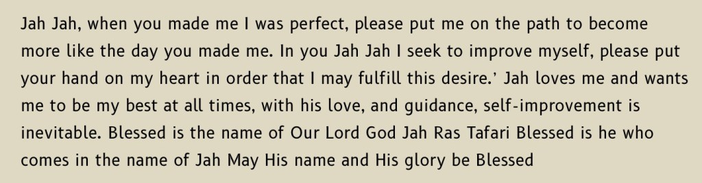 We start with a traditional Rastafari prayer: